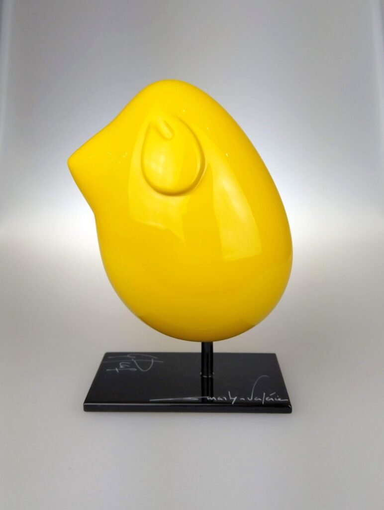 Piaftone jaune, Valérie Marty, résine coulée laquée, 16 cm, numéroté sur 100, 400 €