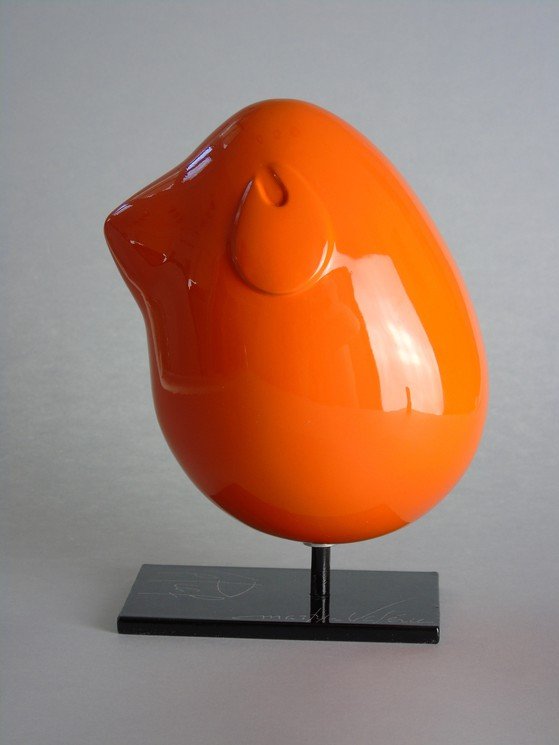 Piaf orange, Valerie Marty, 16 cm, résine coulée laquée, numéroté sur 100, 290 €