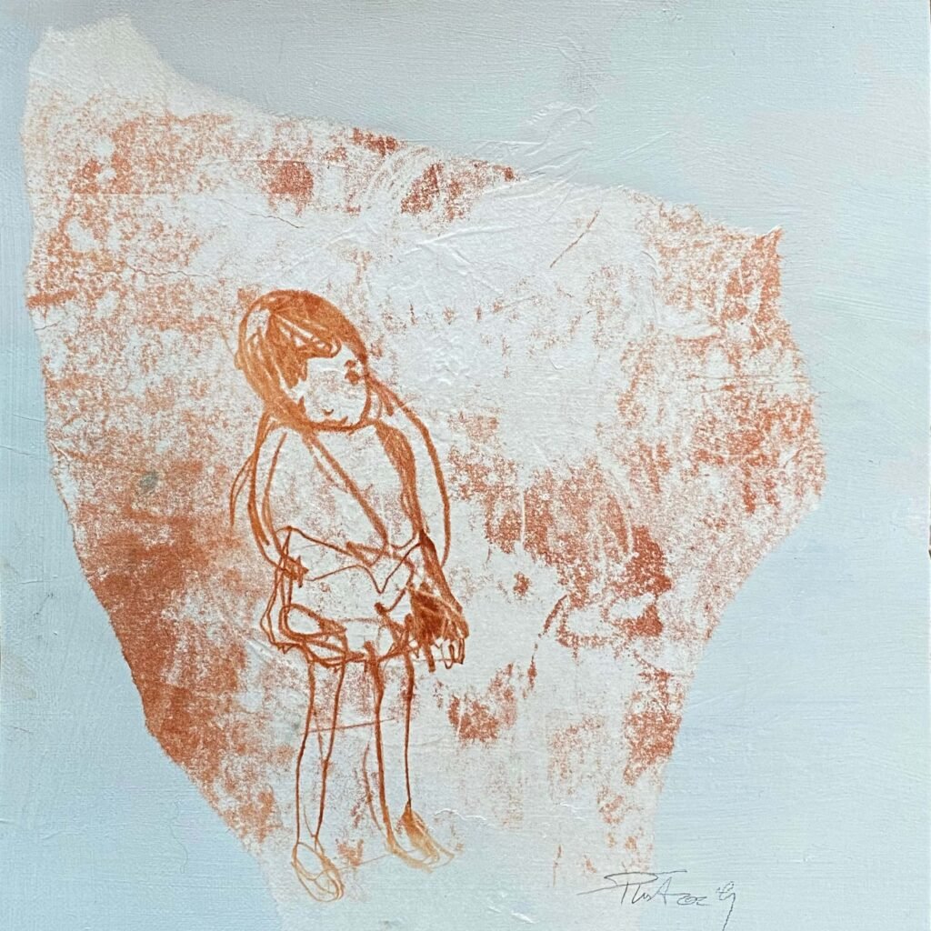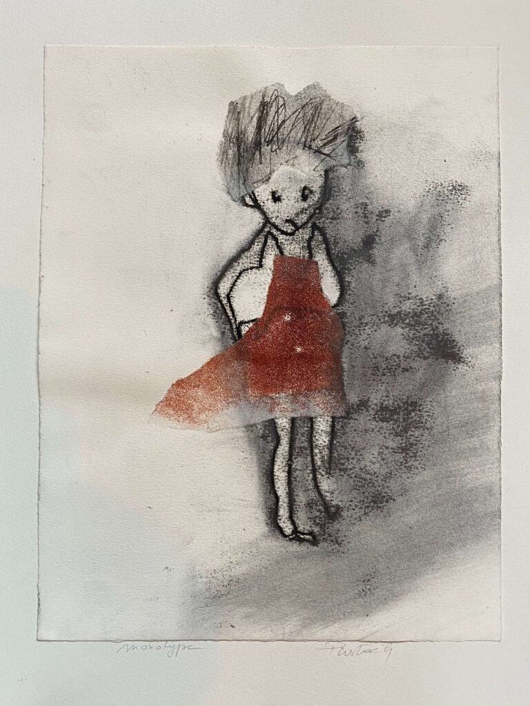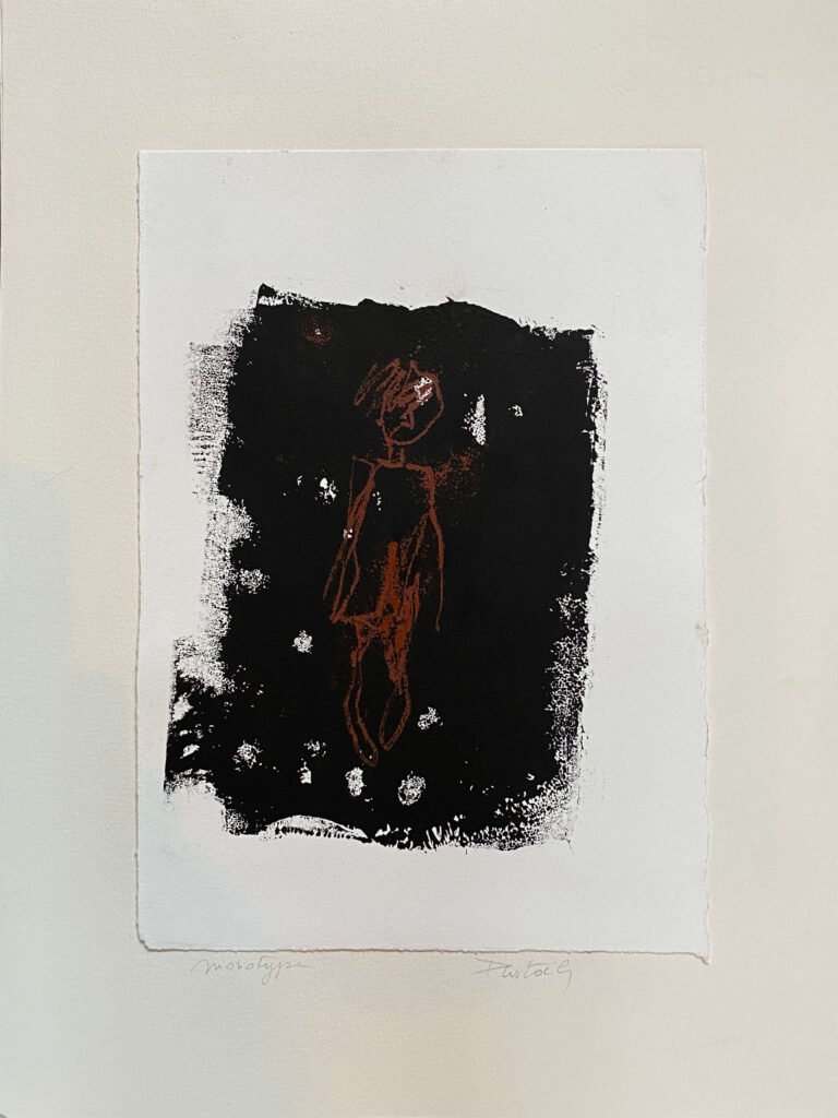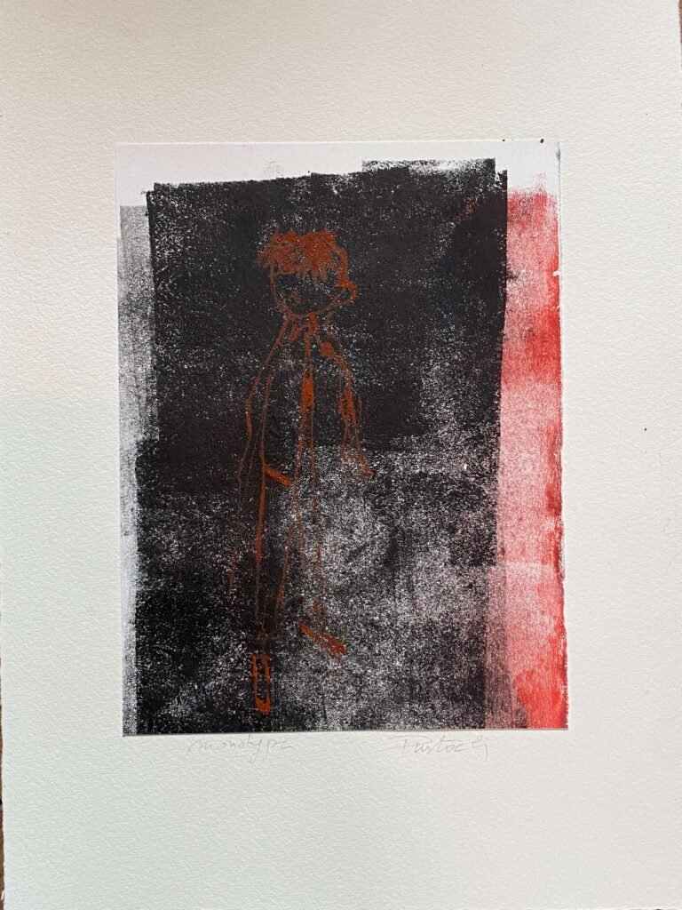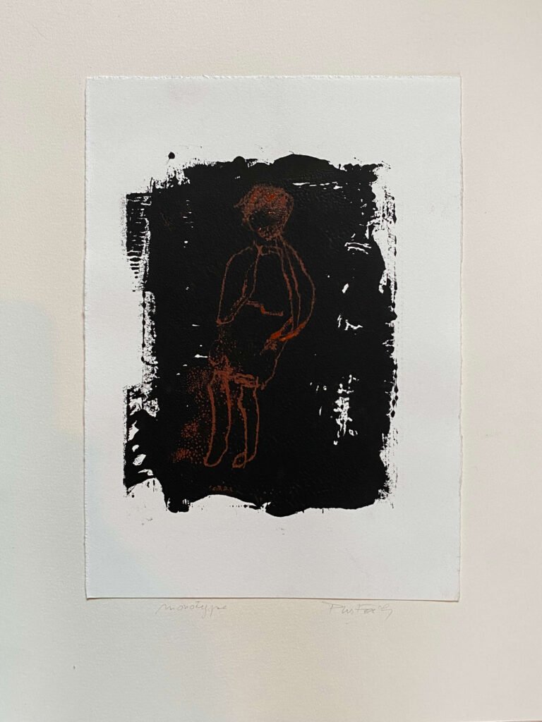 La gravure, essentiellement les monotypes, complètent mon travail de peintures à l’huile, de portraits expressifs et de corps désarticulés couchés sur la toile d’un geste vif et généreux.